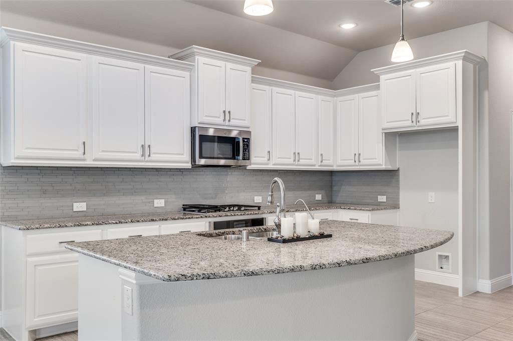 Welcome to this beautifully maintained one-story home nestled in the sought-after Willow Wood Subdivision — featuring outstanding community amenities with no PIDs or MUDs, and conveniently located near HEB. From the entryway through the family room, breakfast nook, kitchen, and utility room, elegant decorator tile flows throughout the main living areas. A versatile study framed by double French doors overlooking the backyard offers endless possibilities — home office, media room, or flex space. At the heart of the home is a stunning open-concept kitchen that truly impresses: abundant cabinetry, recessed lighting, granite countertops, a glass-look tile backsplash, a gas cooktop, stainless steel oven, microwave, and dishwasher — plus an oversized island with pendant lighting and a breakfast bar. A massive 7x6 walk-in pantry keeps every inch of storage organized and accessible. The expansive family room features a generous wall ready for your entertainment setup, a ceiling fan, and a wall of windows that provides natural light and backyard views. The breakfast nook flows seamlessly into the kitchen for easy, casual dining. The smart split floor plan offers privacy and flexibility. Two secondary bedrooms — each with a walk-in closet — are positioned toward the front of the home and share a full bath. The generously sized primary suite overlooks the backyard. The primary bath has tile floors, a tile-accented walk-in shower, a separate soaking tub, dual sinks, dual medicine cabinets, and a spacious walk-in closet. Large utility room. 12x10 covered patio. Insulated garage door. Sprinklers. Security. Willow Wood residents enjoy resort-style amenities: a large pool with a dedicated splash park, covered seating, and an expansive pool deck; an amenity center featuring a cabana with restrooms, a basketball court, and a sports court; a community playground; a pavilion with BBQ area; and hike-and-bike trails winding through scenic greenbelts and open spaces.