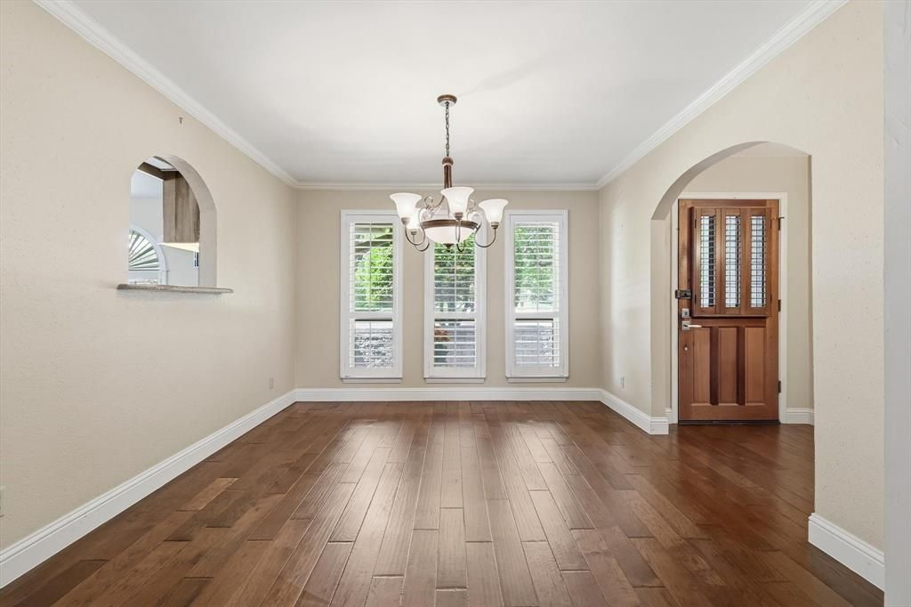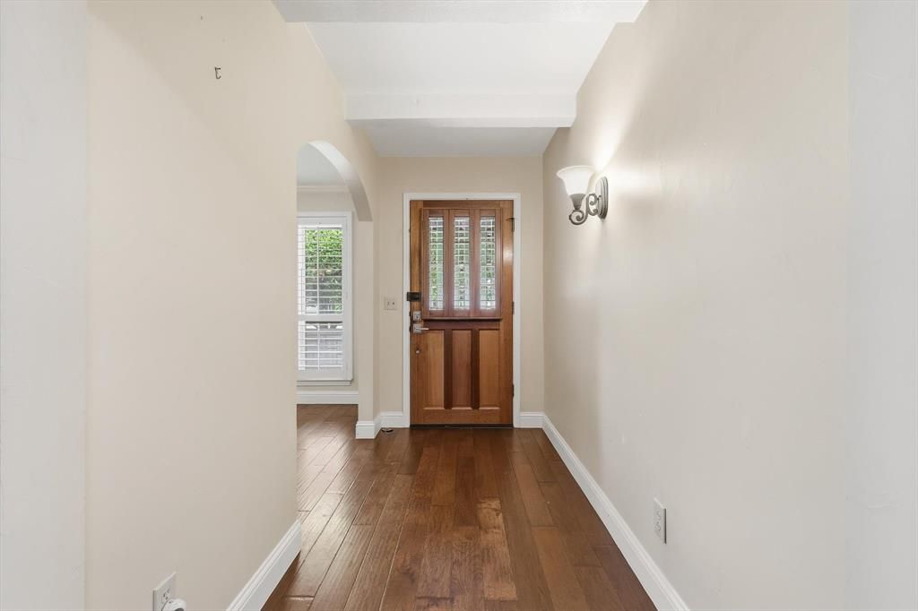 This pristine, one-owner home in the heart of Plano ISD offers a rare combination of meticulous maintenance and high-efficiency upgrades. Ideally positioned minutes from shopping, parks, walking trails, Plano Aquatic Center, Legacy West, and the PGB Turnpike, the property features a bright, open floor plan with wood flooring, decorative lighting, and plantation shutters throughout. The living room is bright and inviting with large windows, vaulted ceiling, ceiling fan, fireplace, sky lights, stainless steel screen at patio door and custom built in cabinets. The kitchen is a standout, boasting granite countertops, a center island, double ovens, and custom cabinetry with soft-close doors and pull-out drawers. A formal dining area at the front of the home features large windows and elegant finishes. Relax in the primary suite, offering backyard views and an en-suite bath with split vanities, an oversized shower, and two cedar-lined walk-in closets. The secondary bathroom includes granite counters and wood cabinetry. Three additional large bedrooms feature ceiling fans and walk-in closets. Significant peace of mind upgrades set this home apart, including a newer HVAC, tankless water heater, no popcorn ceilings, soft water and reverse osmosis drinking water with 5 gallon tank in kitchen, Leaf gutter guards, owned solar panels, and a garage with a dedicated mini-split system—perfect for a home gym or workshop. The exterior is designed for easy living with water-saving artificial turf in the front and a private backyard oasis featuring an eight-foot vinyl privacy fence and a decorative fountain. This property perfectly balances thoughtful interior details with sophisticated, low-maintenance lifestyle upgrades.