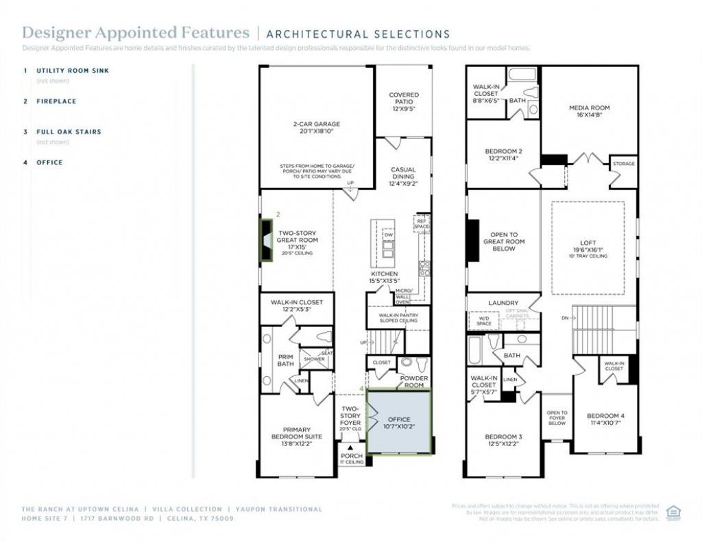 Located in the highly sought-after Ranch at Uptown Celina, this beautifully designed Toll Brothers “Yaupon Transitional” home blends timeless architecture with elevated modern finishes. Thoughtfully curated with designer upgrades throughout, the home showcases distinctive craftsmanship and intentional design at every turn. Step inside to an open, light-filled layout anchored by a stunning two-story great room and highlighted by a sleek fireplace, creating a warm yet sophisticated focal point. The full oak staircase adds a touch of architectural elegance, while a dedicated private office offers the perfect space for working from home or quiet retreat. The kitchen is both functional and refined, seamlessly connecting to the main living areas—ideal for everyday living and effortless entertaining. Additional thoughtful upgrades such as a utility room sink enhance both convenience and livability. Upstairs, a spacious layout includes additional bedrooms, a versatile loft, and a media room, providing flexibility for entertaining, relaxing, or hosting guests. Situated within a master-planned community in the highly acclaimed Celina ISD—zoned to Martin Elementary, Celina Middle, and Celina High—residents enjoy not only top-tier education but also a vibrant lifestyle. With convenient access to the Dallas North Tollway and Preston Road, and just minutes from the charm of Downtown Celina, as well as shopping and dining in Prosper and Frisco, this location offers the perfect balance of tranquility and accessibility. This is a rare opportunity to own a thoughtfully upgraded home by one of the nation’s premier builders in one of Celina’s most desirable communities. REPRESENTATIVE PHOTOS.