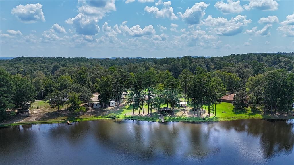 This waterfront home is nestled among stately oaks and pines with it's own 900 square feet Guest House on a gorgeous 26 acre lake. Enjoy the spectacular lake views from the living room and large open patio. Enjoy a fireplace with a heatolator for a cozy winter. This unique property has three bedrooms and an extra family room that could be a fourth bedroom with a full bath. The kitchen has been beautifully updated in Tuscan style, featuring a brick arch over the commercial-grade 48-inch oven with gas cooktop, griddle and grill. It also features a double electric oven and custom vent-a-hood. The six-burner cooktop, granite countertops, and a farm sink make this a true chef's delight! It is open to the oversized laundry room with ample storage for your extra cooking items. The primary bedroom has a gorgeous view of the 191 foot shoreline. Outside, you will find an air-conditioned workshop with a roll up door to bring the outside in. A pump house is located near the water's edge for watering the yard. The gazebo has electricity and water and would make a fun sleeping porch for the kids. There is even a fenced in yard for the dogs. Don't miss the 900 square foot guest house with a full bath and kitchen. It has been rented in the past for $500 per month. Come enjoy fishing, paddle boarding or just enjoy this tranquil setting. Come make this your weekend getaway or full time home.