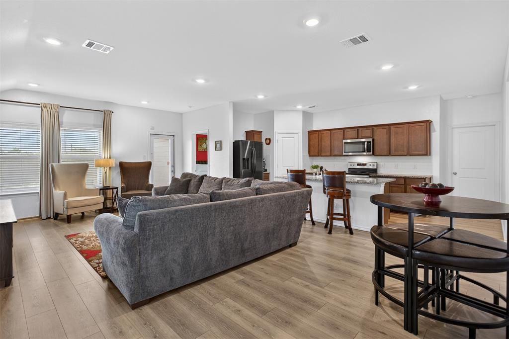 Welcome home to this comfortable 3 Bedroom, 2 bath home with a spacious 2-car garage. Built in 2021 and designed with a modern open-concept floor plan perfect for today's lifestyle. The bright and inviting interior has been freshly painted and features band-new flooring, creating a clean, move-in ready feel. The kitchen with granite countertops opens to the living area making everyday living and entertaining simple and enjoyable. Step outside to enjoy a covered patio and a good size backyard designed for easy upkeep--perfect for relaxing in the evenings and summer BBQs. This home also includes energy-efficient features such as Low-E windows, radiant barrier and tankless water heater, helping keep utility costs more predictable. Conveniently located within walking distance to North Forney High School, Smith Intermediate School, the new HEB grocery store as well as a growing shopping area. This home offers both comfort and convenience in a rapidly developing community and is ready for its next owner to move right in and enjoy. Community Amenities include Swimming Pool, Park, and Walking Trails. Financing Programs available for First-Time Buyers and is Eligible for USDA Loan. Call Elena at 214-724-6039 for details.
