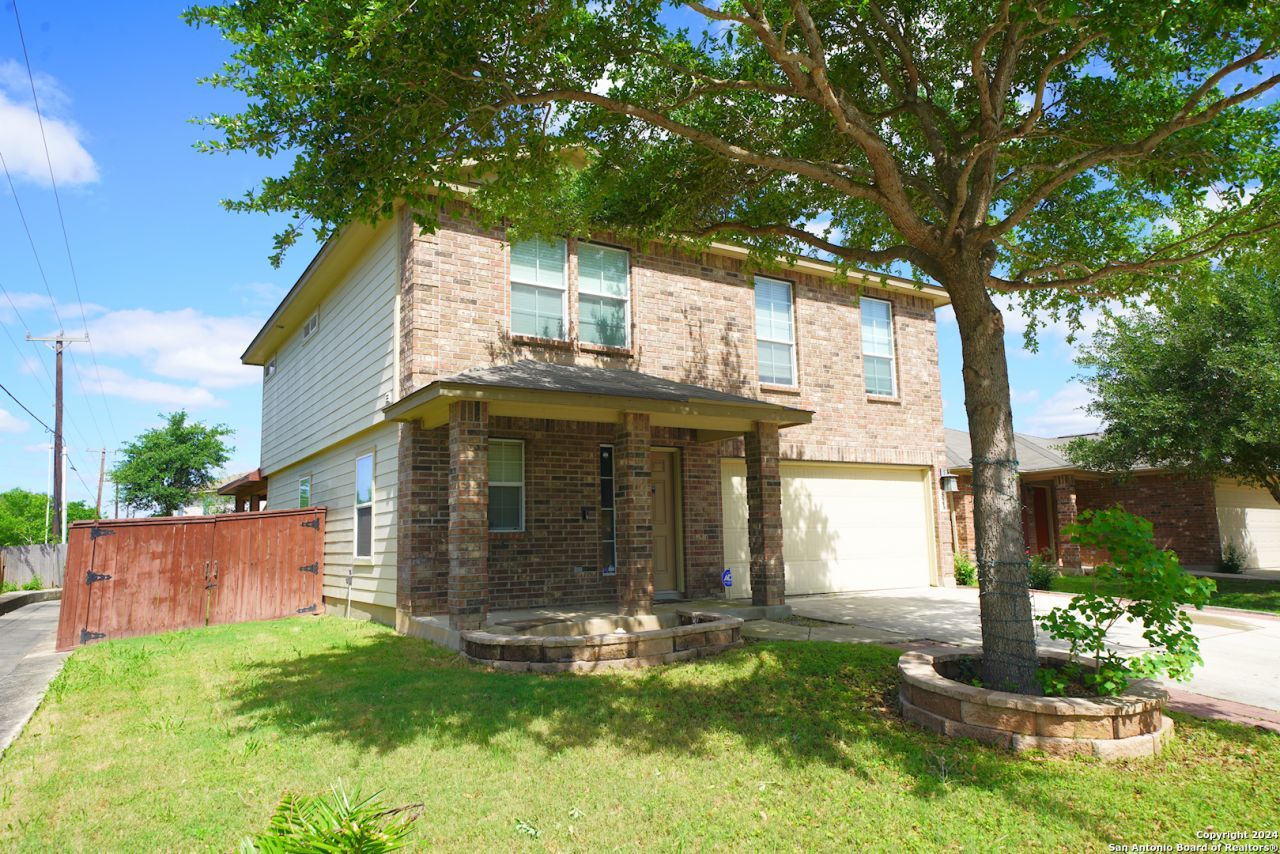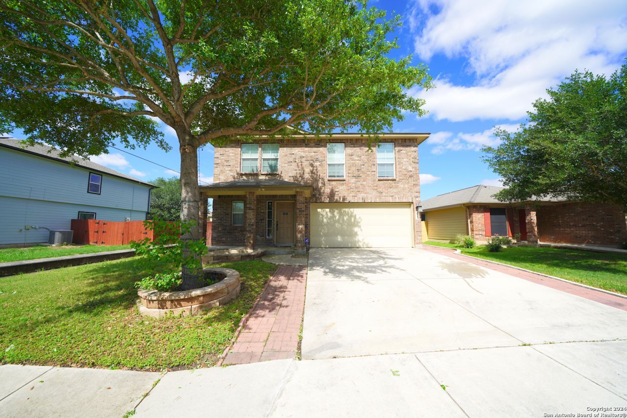 Experience the charm of this 4-bedroom, 2.5-bathroom home nestled in the sought-after Astoria Place subdivision of Converse, TX. Upon entry, be greeted by the warmth of upgraded laminate wood flooring flowing seamlessly into the combined family and dining room. Relax in the cozy ambiance of the family room, complete with a sizable built-in shelving unit housing an electric fireplace, perfect for chilly evenings. The kitchen boasts upgrades including granite countertops, a tiled backsplash, and stainless steel/black appliances, including a high-end refrigerator for your convenience. Upstairs, all bedrooms feature ceiling fans and laminate wood flooring for effortless maintenance. Unwind in the spacious master bedroom, complete with a full en-suite bathroom featuring double vanities, a large walk-in closet, and a combined garden tub/shower. Step outside to discover the true highlight - a custom-covered patio extension boasting a wood-burning fireplace, grill, and additional sink, ideal for weekend BBQs. A generously sized storage shed completes the backyard oasis. Conveniently located with easy access to I-10, Loop 1604, and just a short commute to Randolph AFB, this home is ready to welcome you. Dont miss the opportunity to make it yours-schedule a showing today!